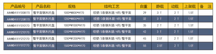 四向三腿——整平面鋼木托盤 技術(shù)參數(shù)說明: 產(chǎn)品編號(hào):AAHMD4ⅢY1512170 產(chǎn)品規(guī)格: 1500*1200*170 防銹工藝: 靜電銀粉沙紋噴塑 產(chǎn)品靜載: 2000KG(均勻載重) 產(chǎn)品動(dòng)載: 2000KG(均勻載重) 產(chǎn)品上架: 1500KG(均勻載重) 主要用途: 倉庫、車間周轉(zhuǎn)、高庫物流及倉儲(chǔ)